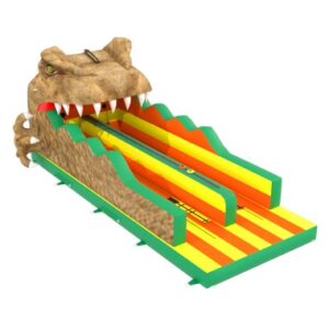 De dino bungeerun is ontworpen voor twee deelnemers. Elke deelnemer wordt vastgemaakt aan een bungeekoord en moet tegen de kracht van het elastiek in rennen. Het doel? Het is een race om te zien wie het snelst is, terwijl je tegelijkertijd probeert niet teruggetrokken te worden door de koord! Deze attractie moedigt gezonde concurrentie aan tussen vrienden, familie of collega’s. Wie is het snelst? Wie kan het verste komen? De adrenaline en het plezier zorgen voor een geweldige sfeer!