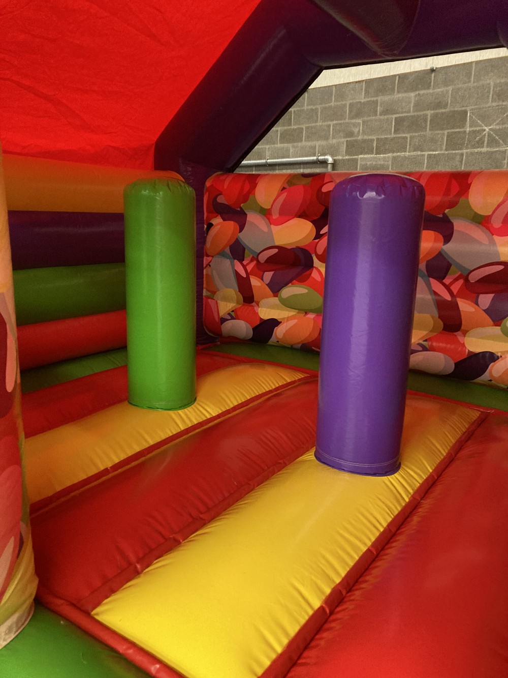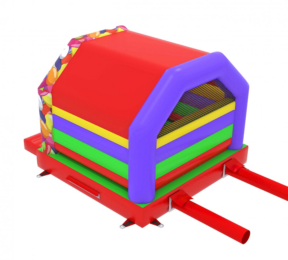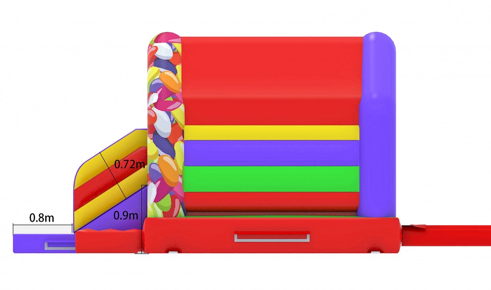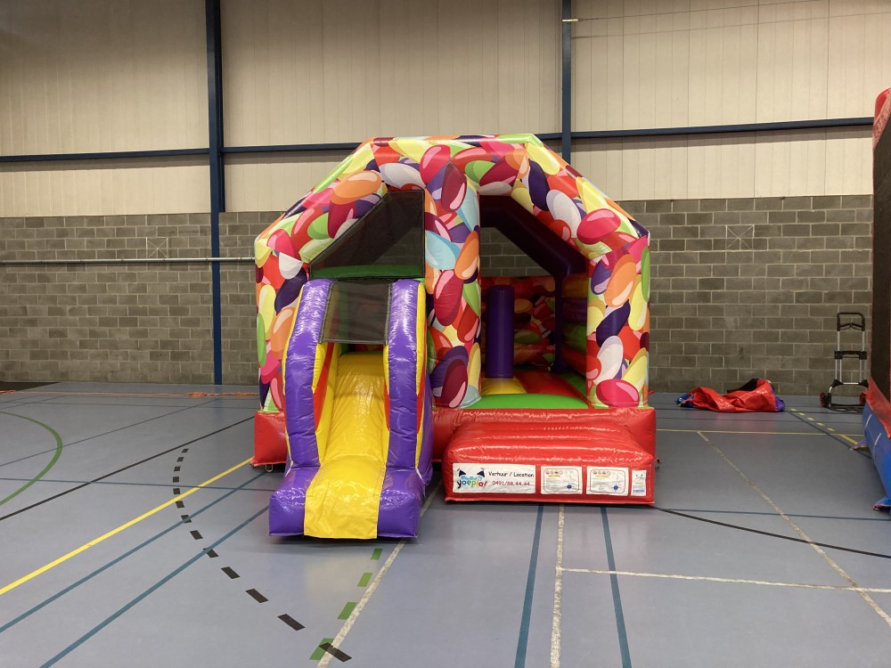 Dit combo springkasteel bezaaid met kleurrijke confetti en voorzien van een gllijbaan en obstakels zorgt voor een feestelijke oase waar vreugde van confetti samensmelt met de levendige energie van spelende kinderen. Zoals vele andere combo springkastelen in ons gamma is ook dit springkasteel geschikt voor kleinere tuinen of plaatsen waar men niet over veel hoogte beschikt.