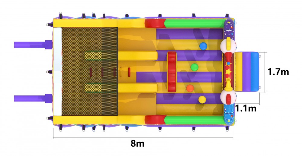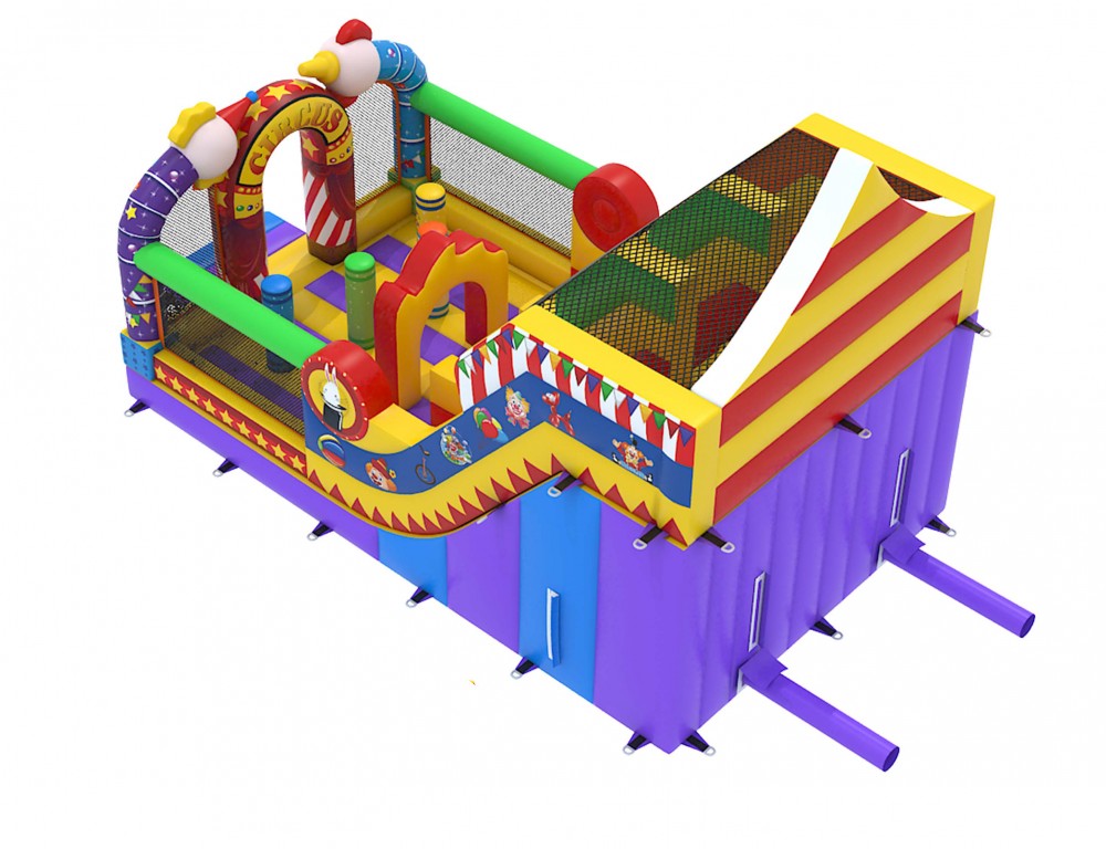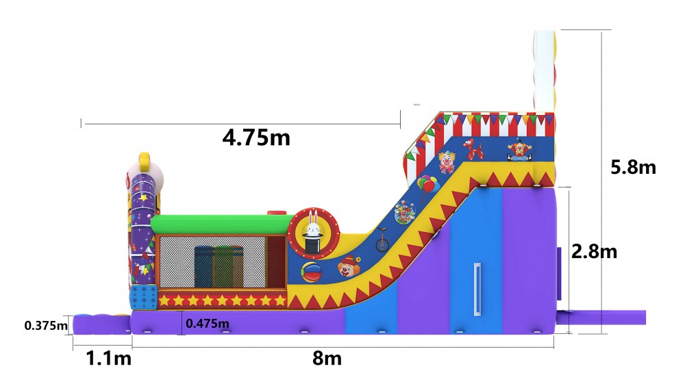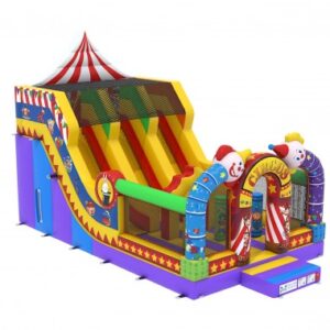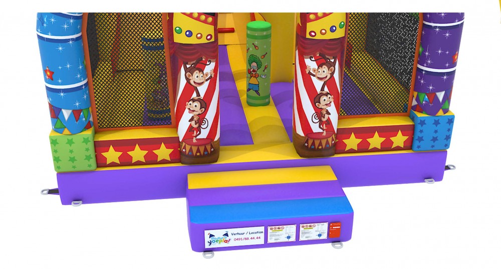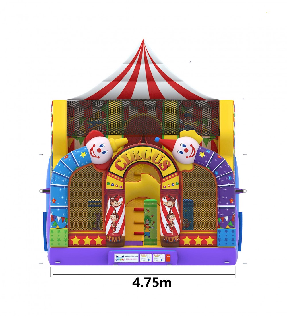 Indien u op zoek bent naar een springkasteel met een grappige uitstraling en dat boordevol uitdagingen zit dan zal u ongetwijfeld voor de multiplay circus kiezen. Niet alleen zijn toffe obstakels en zijn mooie illustraties maar ook zijn dubbele glijbaan van bijna 3 meter ! zal van uw feest een belevenis maken om nooit te vergeten.