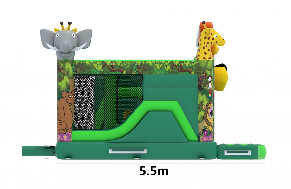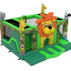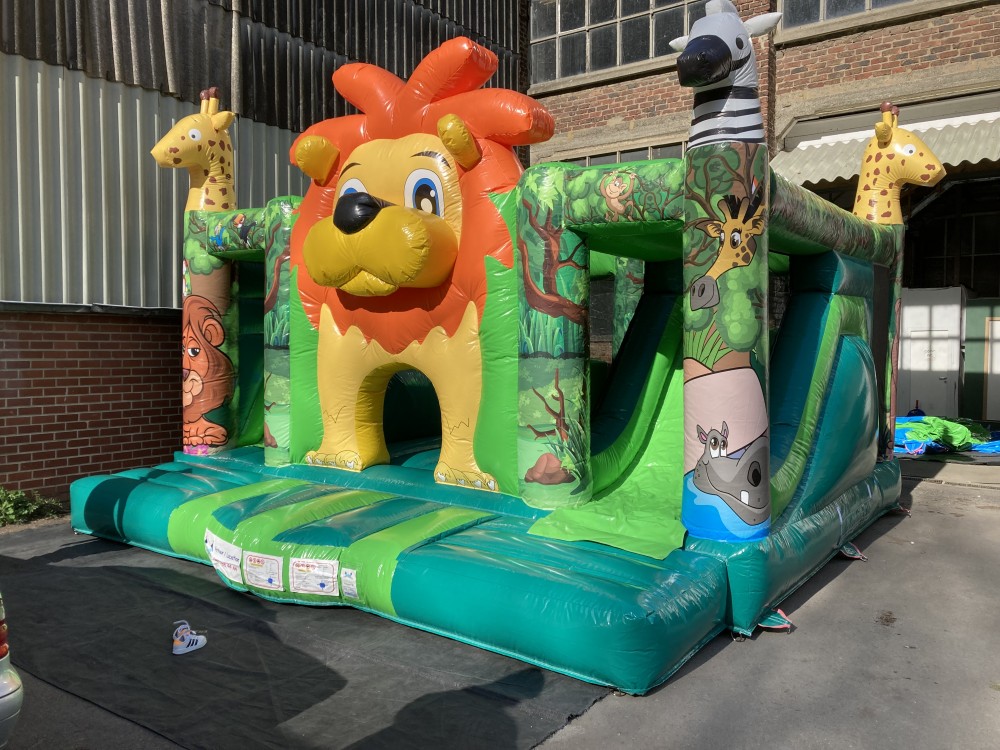 Breng de magie van de jungle naar jouw feestje en evenement met ons springkasteel leeuw met dubbele glijbaan en obstakels. Met zowel een grote als een kleine glijbaan is dit springkasteel geschikt voor kinderen van verschillende leeftijden en garandeert het glijplezier voor urenlang vermaak. De dierenhoofden en de mooie prints brengen de jungle tot leven en geven het een avontuurlijke twist, zo maak je van jouw achtertuin een onvergetelijke speelzone.