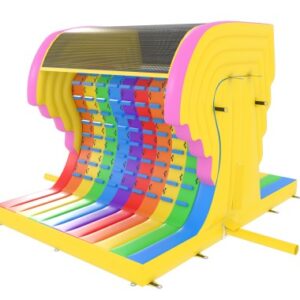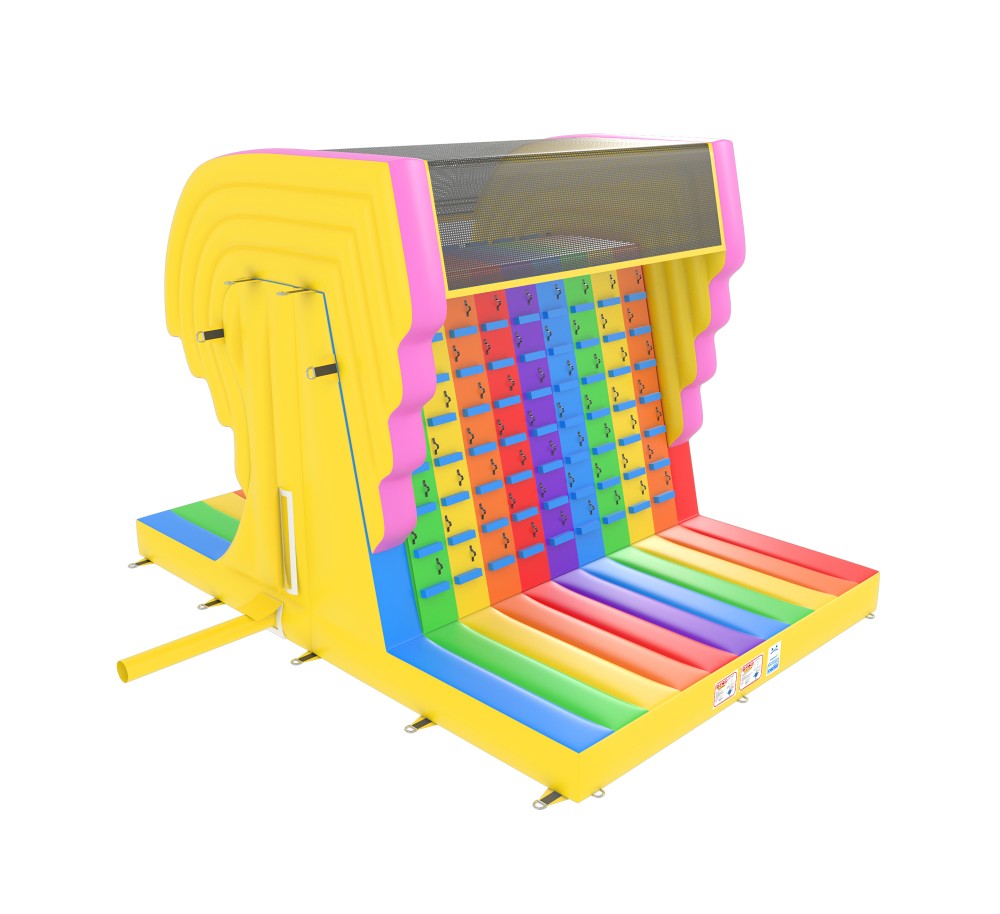 Deze vrolijke klimmuur in prachtige regenboogkleuren biedt een spannende uitdaging voor iedereen!