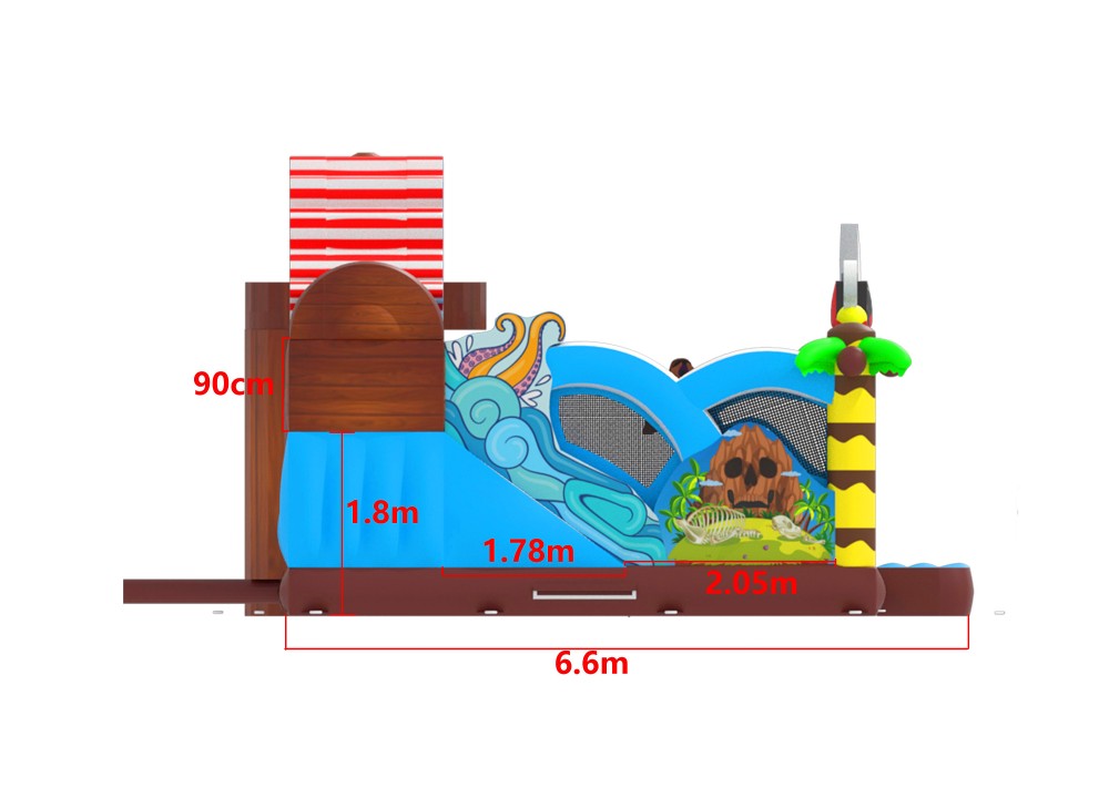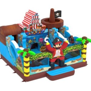 Met zijn kleurrijke ontwerp en leuke obstakels zal dit springkasteel zeker de harten van kleine kapiteins veroveren.