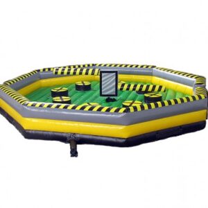 De mechanische sweeper, wipe out voor 8 personen is een spectaculaire en uitdagende opblaasbare attractie voorzien van 2 ronddraaiende armen die u meedogenloos zullen proberen te doen omvallen. Versla de andere tegenstanders door nog als laatste overeind te staan. Hij wordt geleverd met afstandsbediening. U geniet van 2 jaar garantie op alle mechanische en elektrische onderdelen en krijgt er het nodige certificaat van Vinçotte bij. Deze sweeper is van professionele kwaliteit en is bestemd voor verhuur. Ideaal voor sportevents.