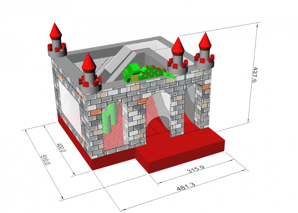 Trek je ridderharnas aan, grijp je zwaard en beleef een epische speelervaring met het springkasteel groene draak. Binnenin het kasteel vinden kinderen obstakels, een glijbaan en een ruimte om te springen en zichzelf onder te dompelen in hun eigen middeleeuwse avonturen.