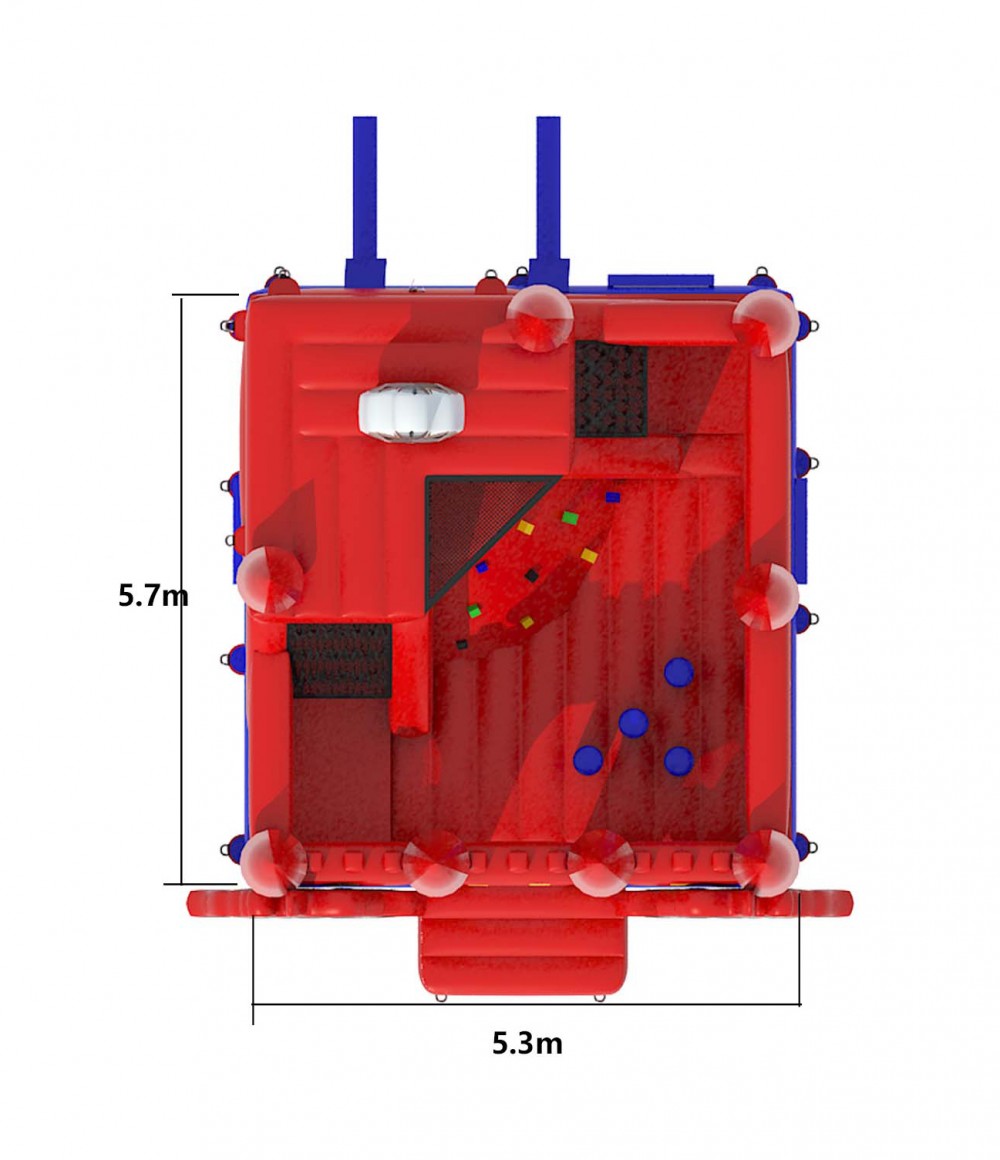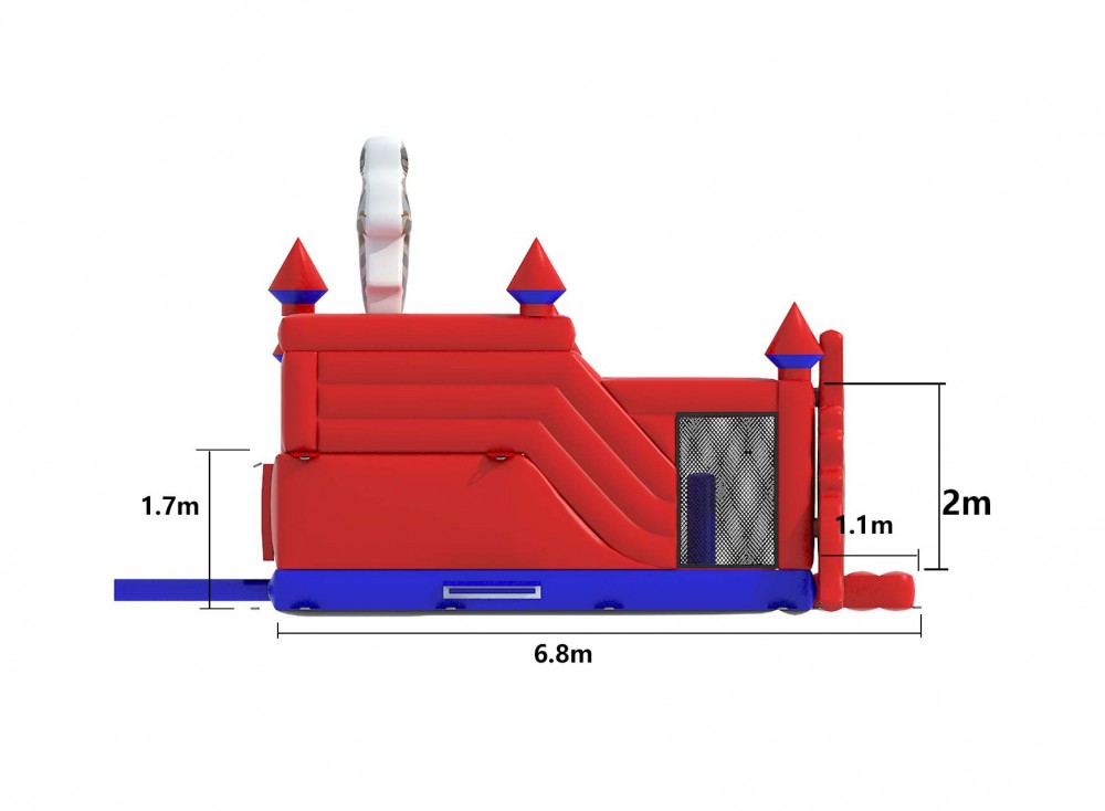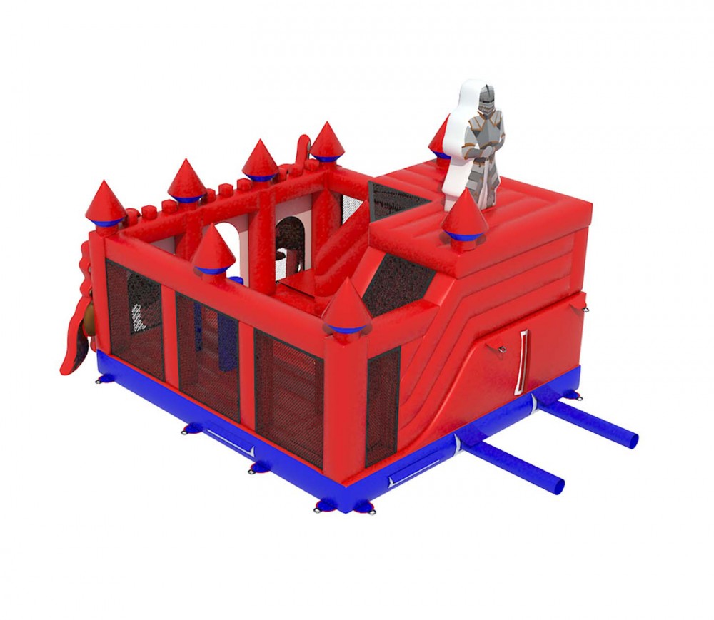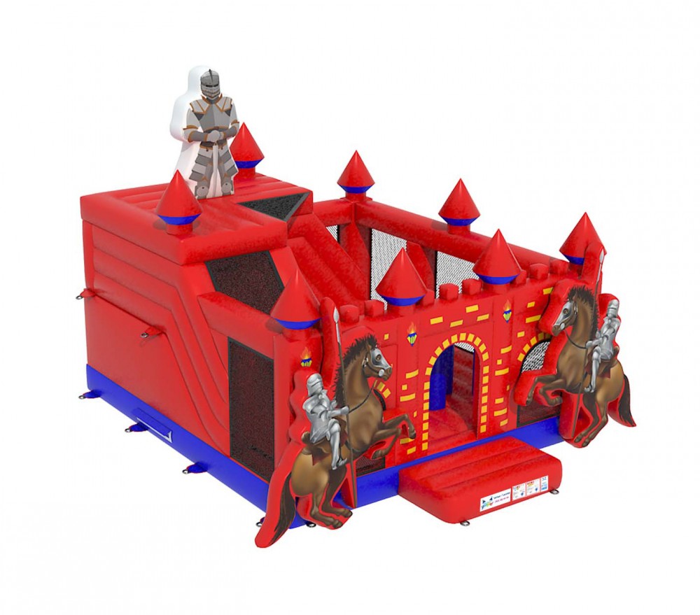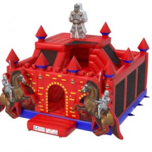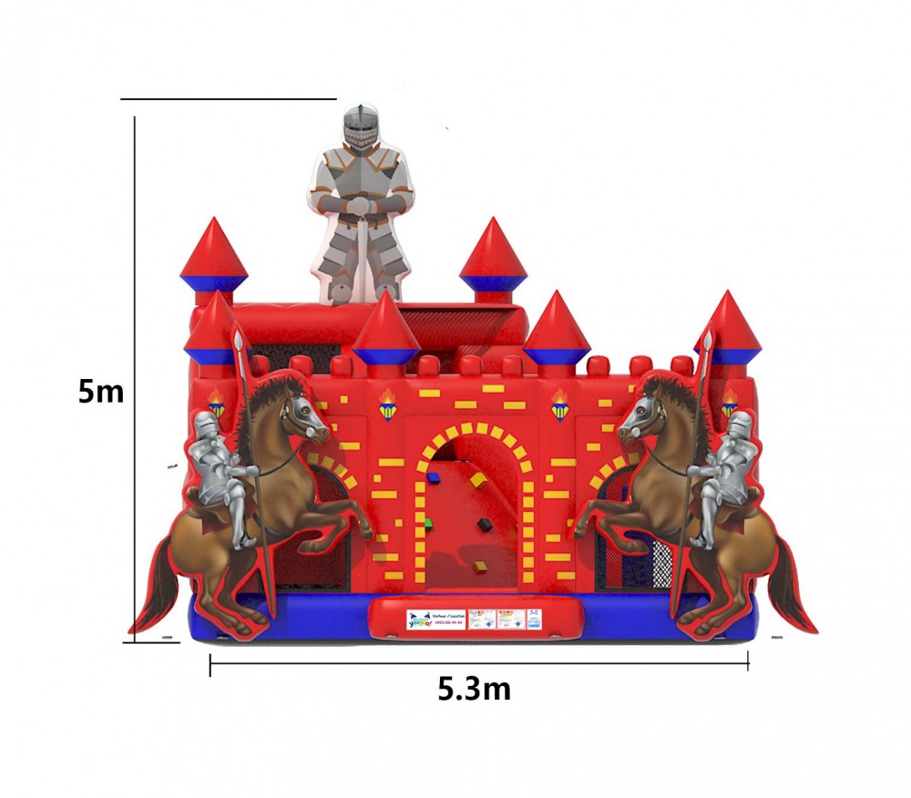 Betreed het koninkrijk van fantasie en avontuur met het rode ridderkasteel met klimmuur. Dit opvallende springkasteel neemt kinderen mee terug in de tijd naar een wereld van dappere ridders, majestueuze torens en eeuwenoude geheimen. De klimmuur biedt de jonge ridders de kans om hun klimvaardigheden te tonen en de hoogste torens van het kasteel te bereiken.
