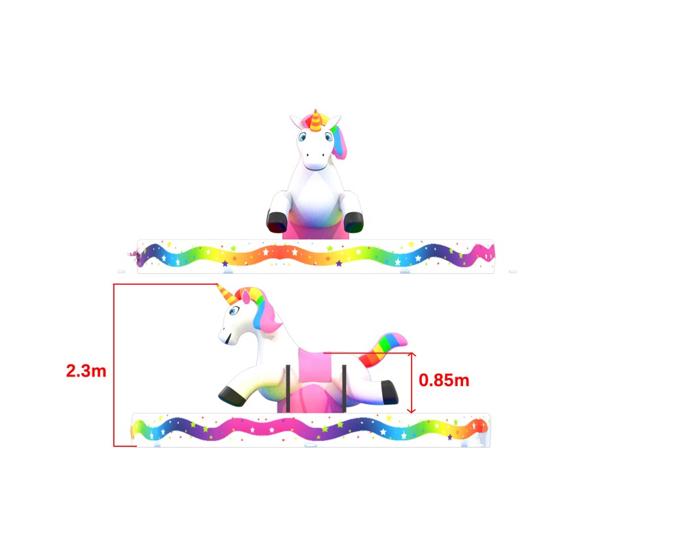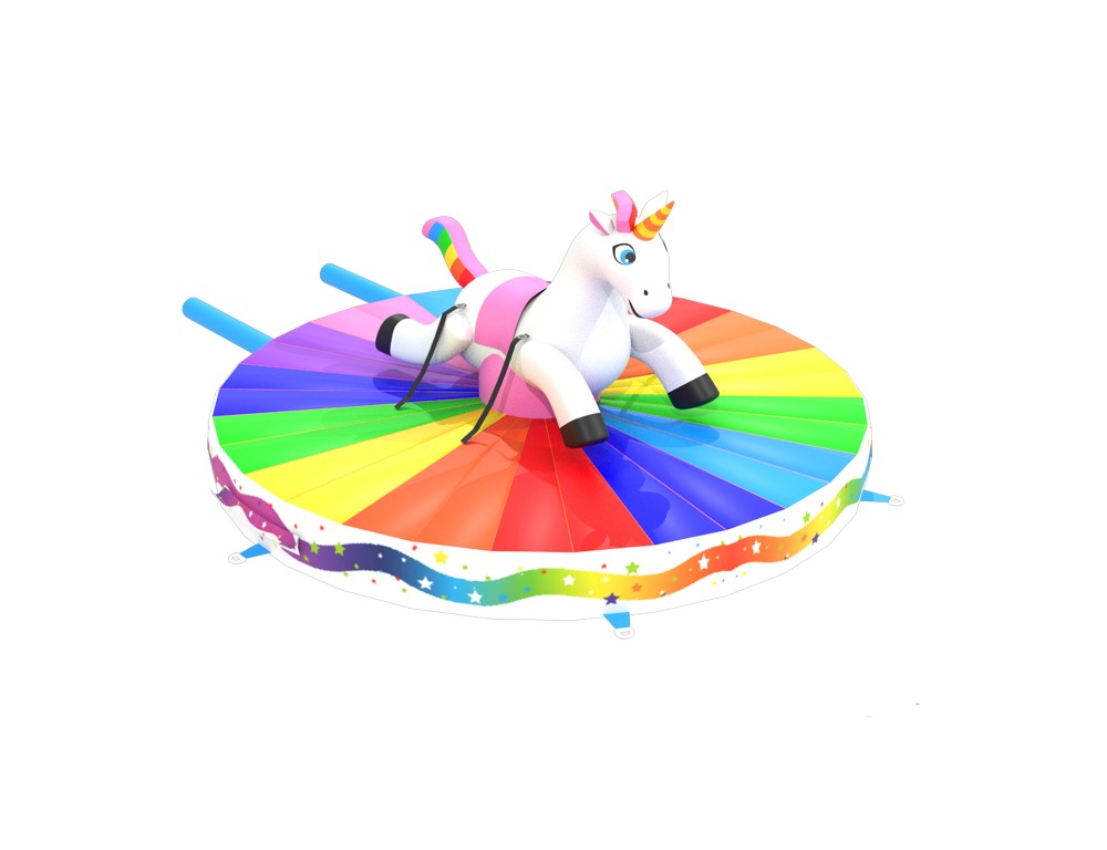 Klim op de rug van deze majestueuze eenhoorn en probeer zo lang mogelijk te blijven zitten terwijl je vrienden aan de touwen trekken om je eraf te halen.